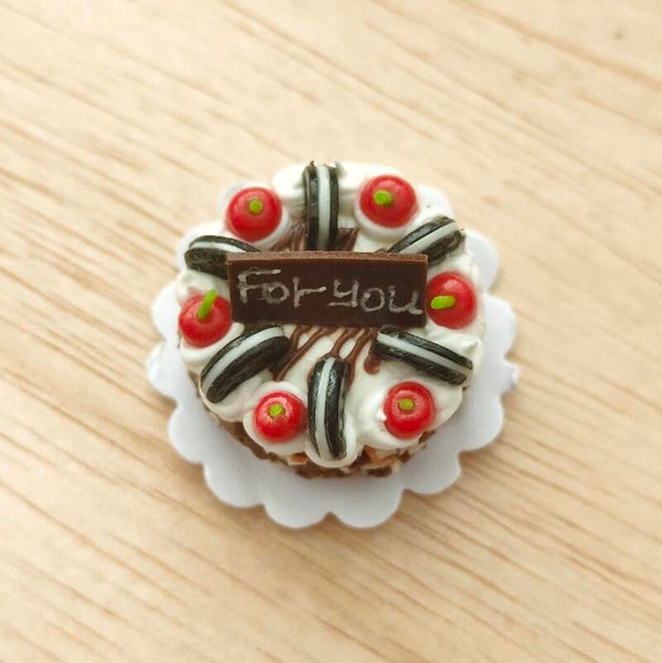 Het taartje is gemaakt op een stukje papier, dit zit vast aan het taartje.