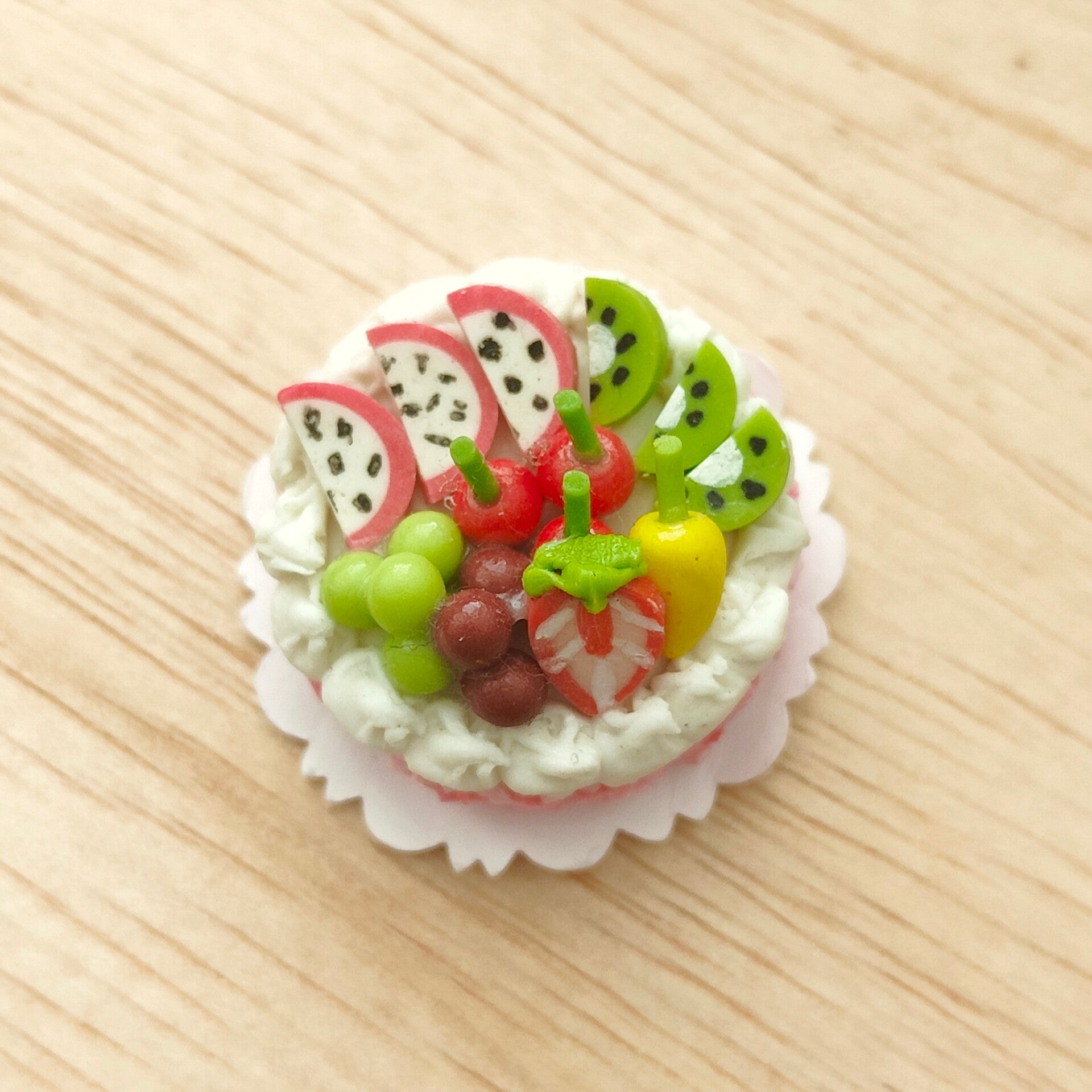 Het taartje is gemaakt op een stukje papier, dit zit vast aan het taartje.