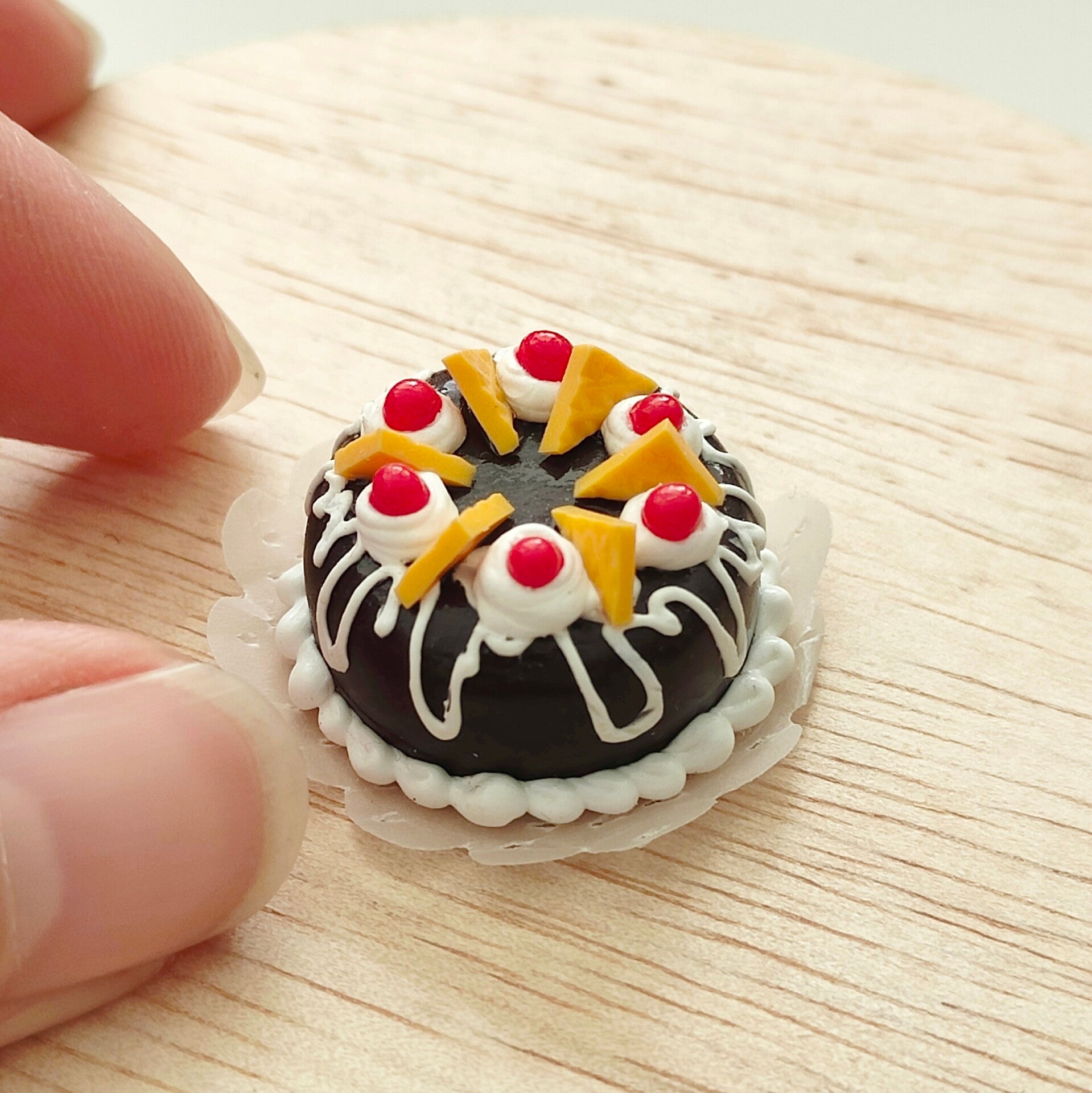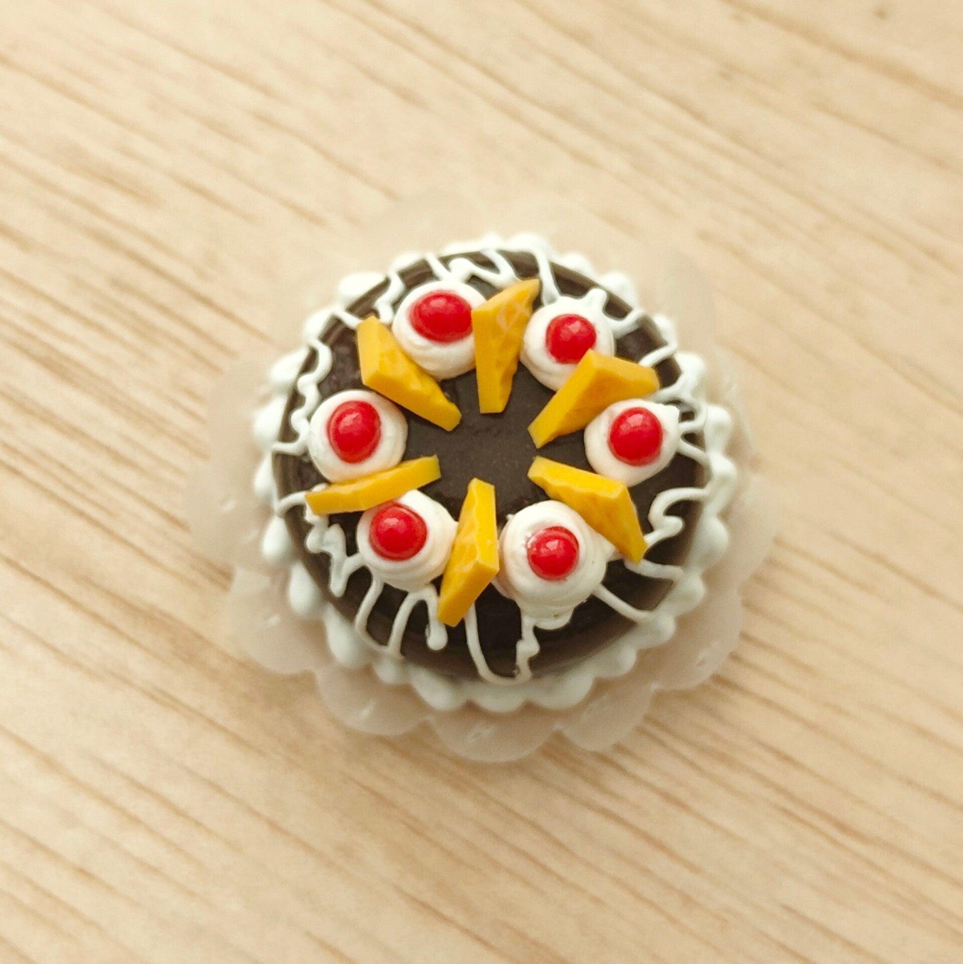 Het taartje is gemaakt op een stukje papier, dit zit vast aan het taartje.