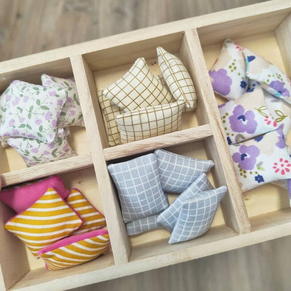 Leuk kussentje voor op de bank of op het bed van je poppenhuis.