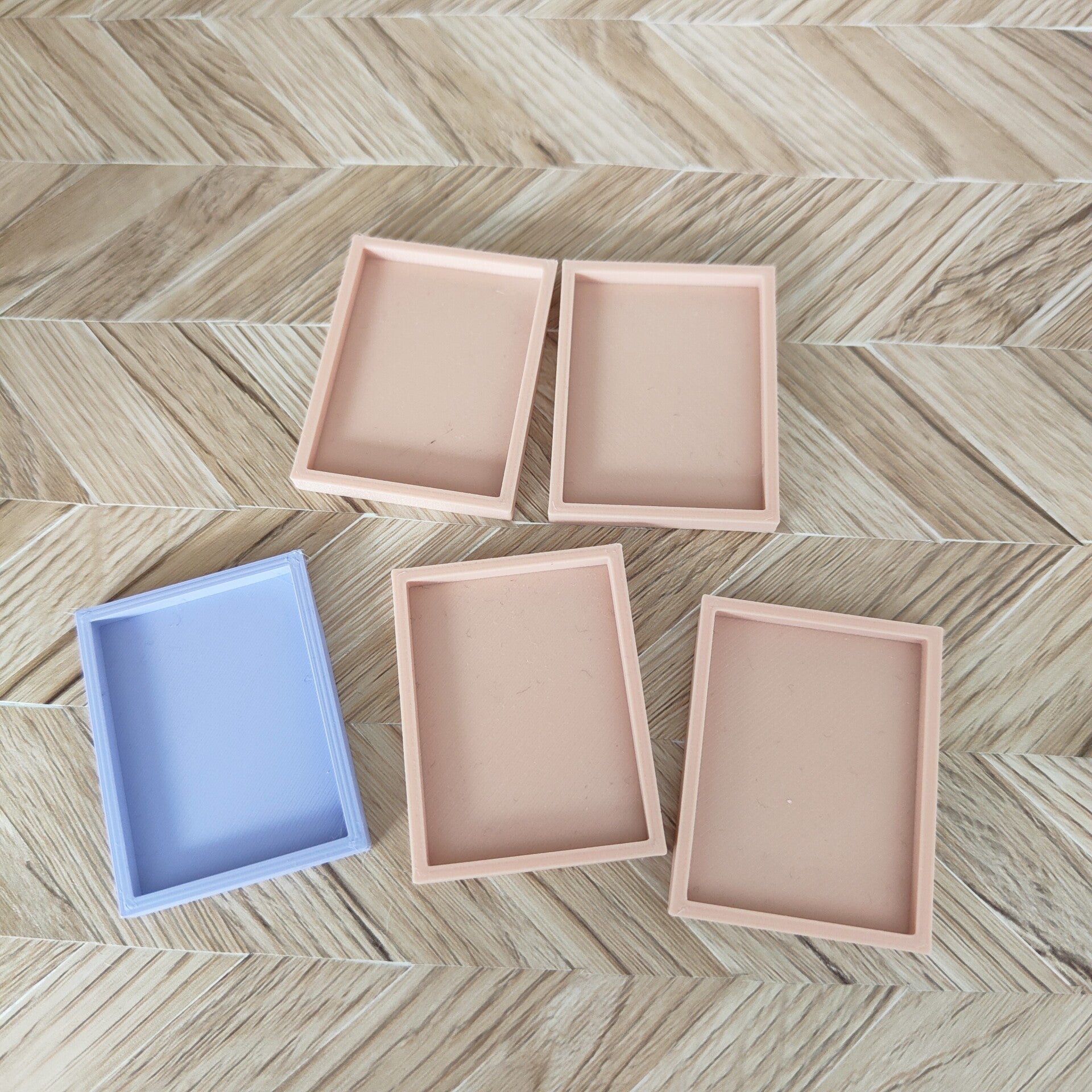 Setje lijstjes in pink peach en lila, 3D geprint maar de bedhechting was niet goed. Aan de voorkant zijn ze prima, aan de achterkant is bij alle lijstjes een hoekje omgekruldWeggooien is ook zonde Afmeting lijstje: 3,4 x 4,4 cm 0,4cm dik