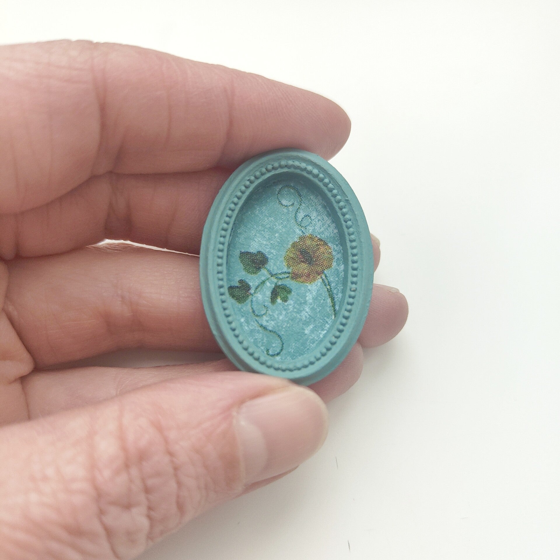 Leuk ovaal vormig lijstje met een vintage bloemen print erin.