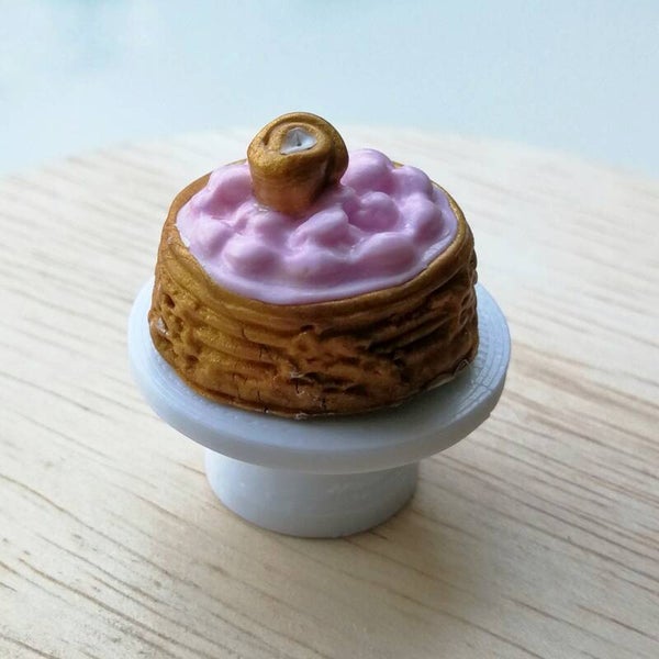 Taartje met roze topping en gouden roosje.Handgemaakt door Monique Huitema.