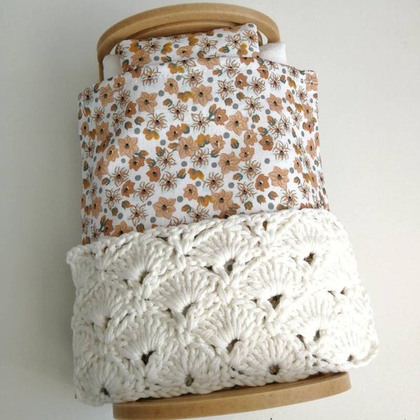 Handgemaakte bedsprei voor aan het voeteneinde van een bedje.