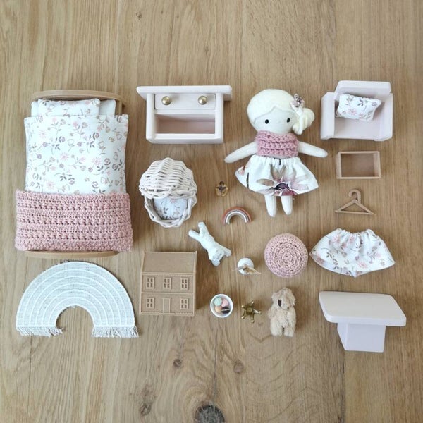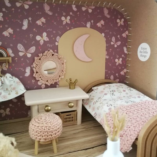 Lief poppenhuisje in een koffertje om mee te spelen of ter decoratie op de kinderkamer.