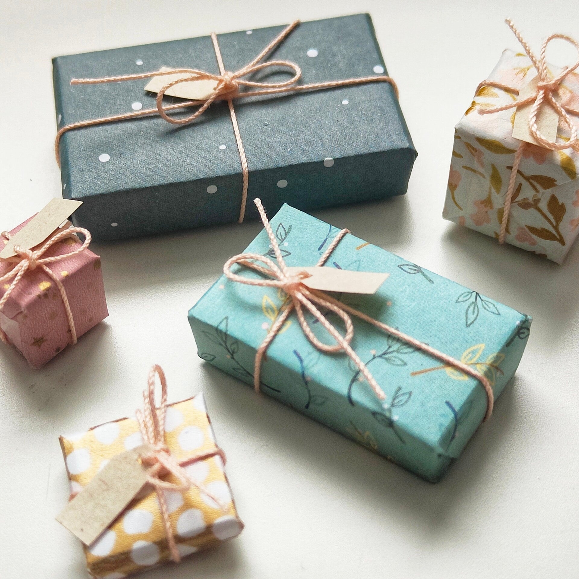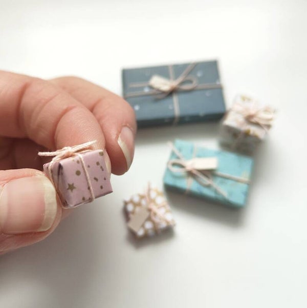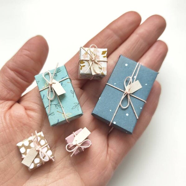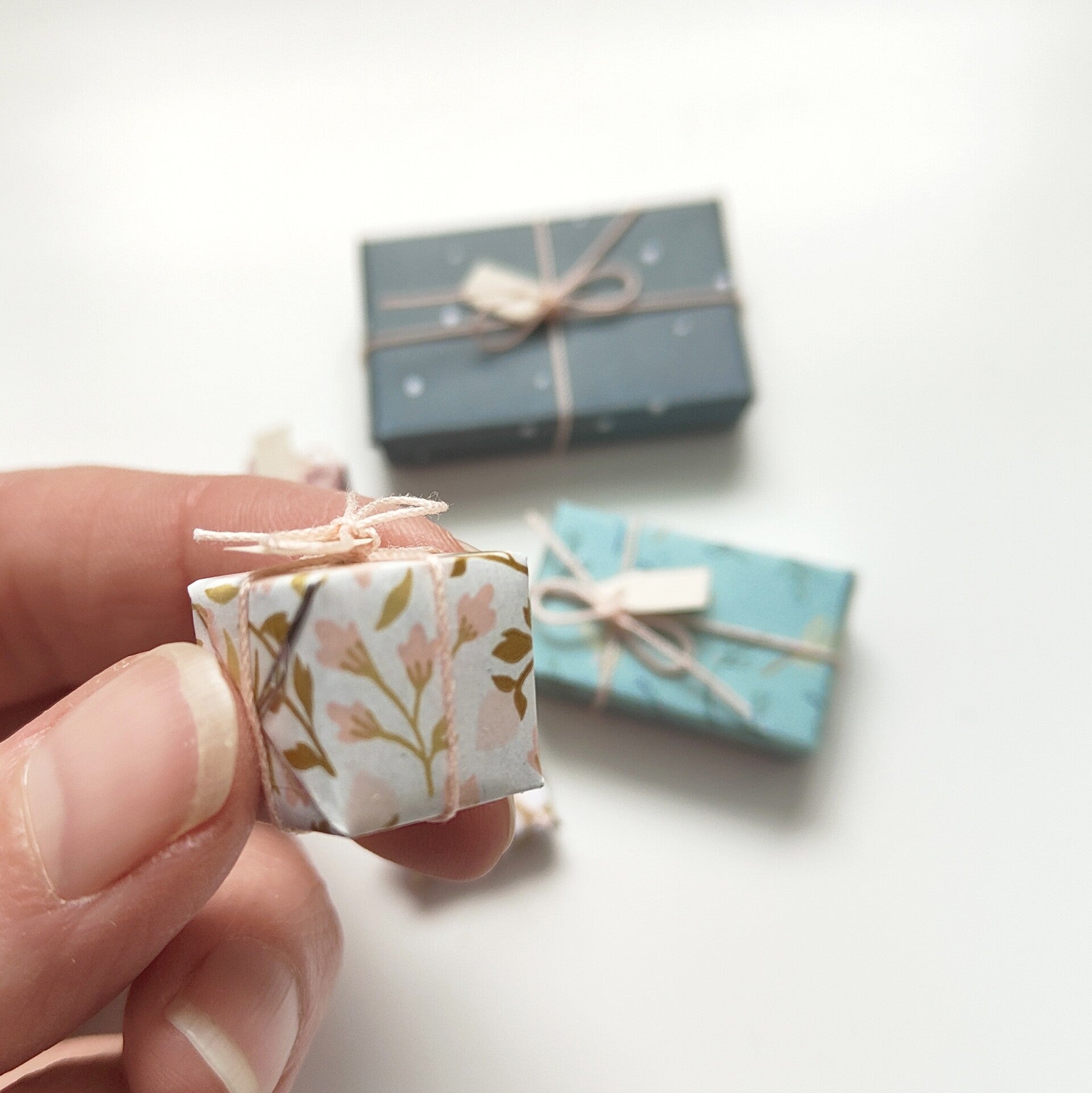 Set met mini kadootjes ter decoratie van je poppenhuis. Leuk voor onder de kerstboom of een ander poppenhuis feestje.